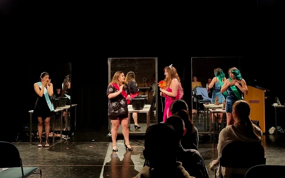 New Newham Diamonds is a world premier devised production, aimed at criticizing the historic treatment of the land and female bodies in the London Borough and Newham, specifically Stratford. Created through a lens of ecofeminist dramaturgy, New Newham Diamonds was inspired by the South American ecofeminist quote, “ni las mujeres ni la tierra somos territorio de conquista” (translation: “neither women nor the earth are territory of conquest”). Set within a fictional beauty pageant, the contestants must compete against each other to win a brand-new house. Utilizing historic research on real stories found within the Newham Archives, New Newham Diamonds grapples with themes of women’s rights, labour, gentrification, and the treatment of the land in Stratford.